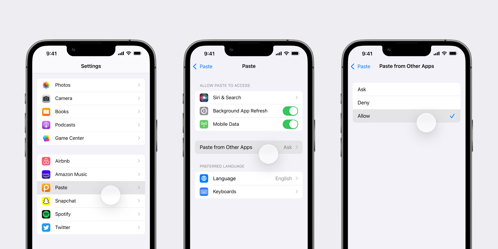 iOS 16では、Appleはアプリ間のコンテンツのコピー&ペーストを制御する特別な権限を導入しました。